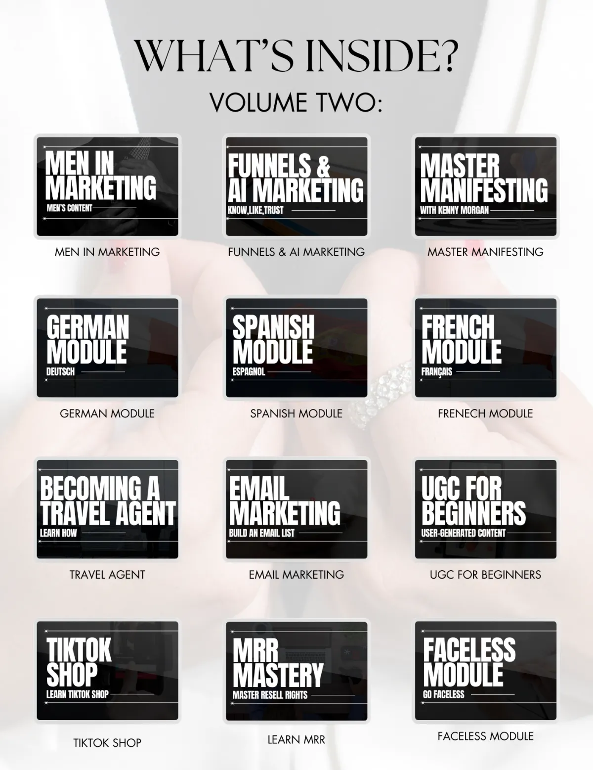 The perfect blend of some of the TOP courses out there plus more! Why spend over $3,000+ on all of the courses individually when you can get it all for the price of ONE!